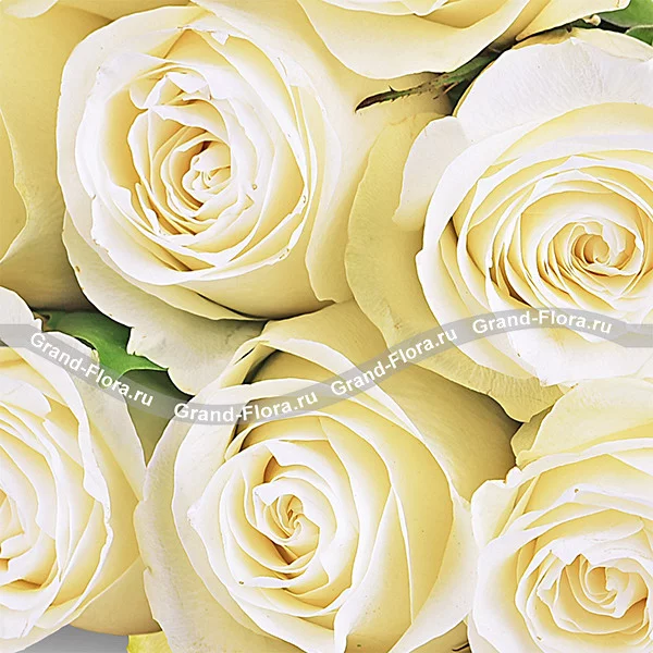 Букет белых роз  (акционный букет, высота роз 40-50 см). Роза белая 40-50 см - 9 шт, упаковка, лента